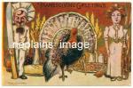 THANKSGIVING - Thanksgiving Greetings - Turkey, Chef with Knife, Woman with Fork - 1908