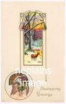 THANKSGIVING - Thanksgiving Greetings - Turkey, Deer in Forest (Julius Bien 9403) - DPO
