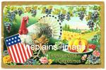 THANKSGIVING - Thanksgiving Greetings - White Turkey, Grapes, Pumpkin, Patriotic (2096A)