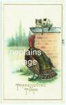 THANKSGIVING - Thanksgiving Token - Turkey sees Cat on Wall - 1912 - glittered (JJ Marks 81)